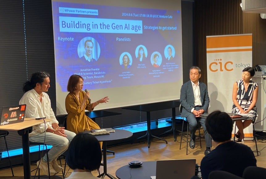 イベント「Building in the Gen AI age – Strategies to get started」の振り返りシリーズ、最終回はパネルディスカッションとQ&Aの内容をお届けします。第1回で取り上げたフランクル氏、第2回の中井氏に加えて、リーガルテックスタートアップ・リセのCEOである藤田美紀氏、パランティアCEOでSOMPOグループCDO 執行役専務の楢󠄀﨑浩一氏が、生成AIのユースケースについて語りました。